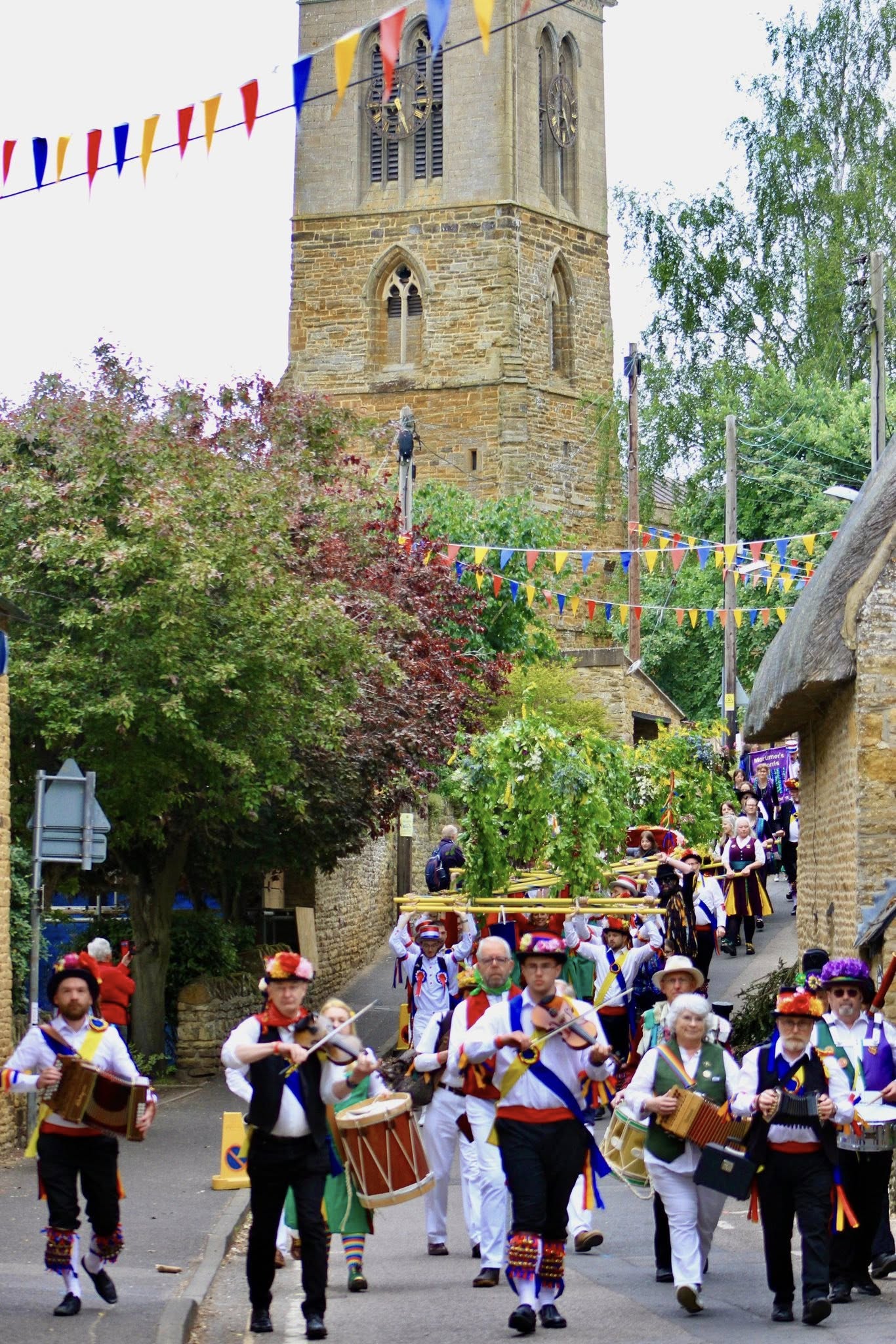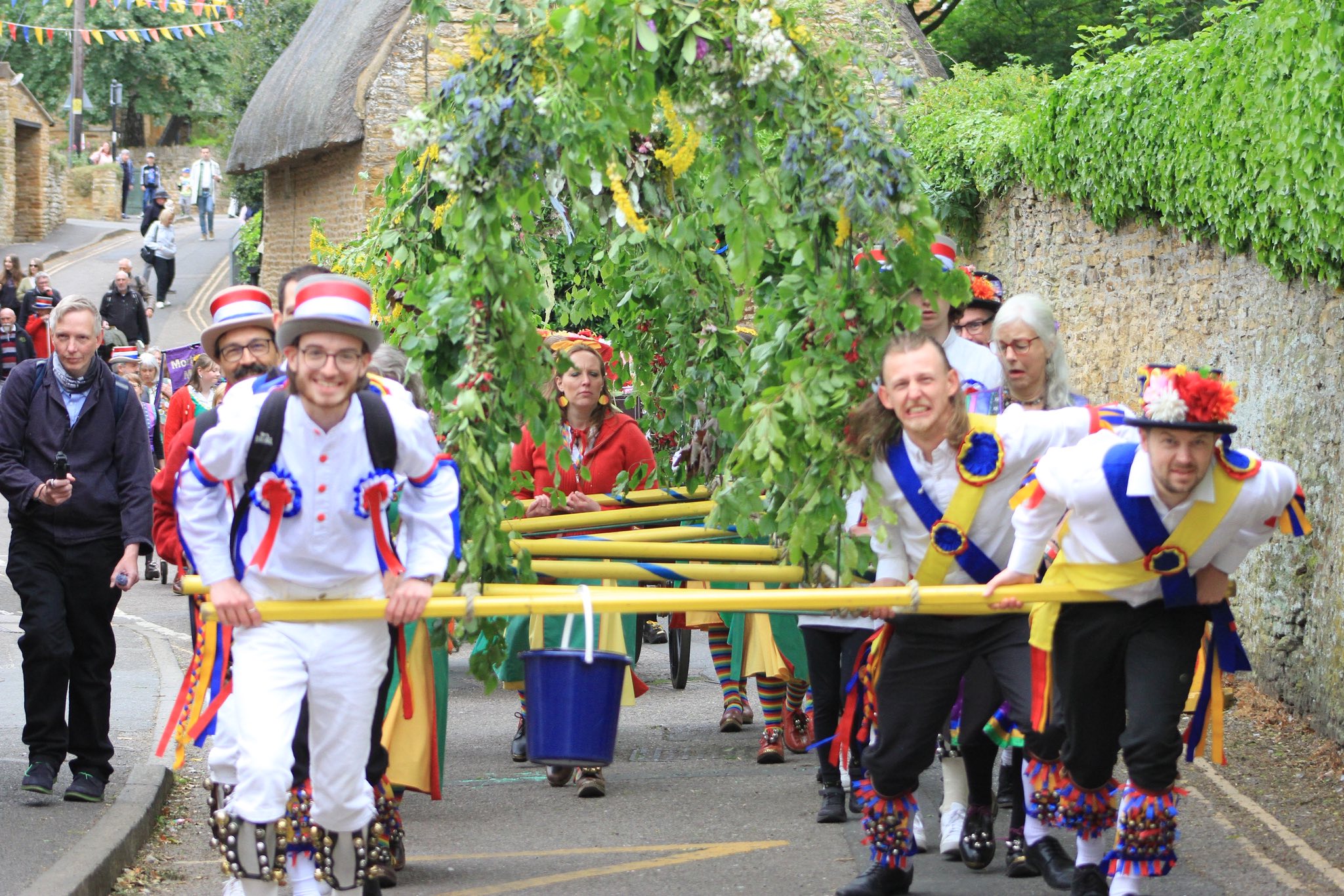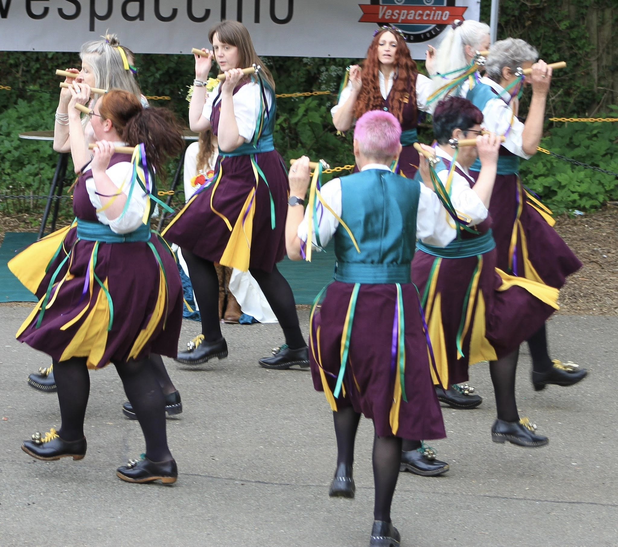 Morris sides from all over the country arrive to decorate the May Cart with flowers  and form the procession round the village up to the crowning ceremony.  In addition, there are stalls, concerts , dancing displays and other activities.  This year the visiting sides were Belle D'Vain, Berkshire Bedlams, Chelmsgord Ladies, Mortimers, Queens Oak & The Witchmen