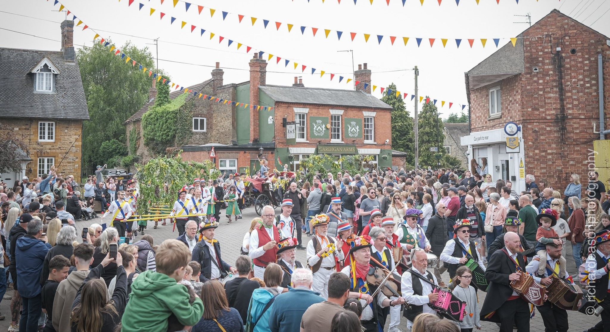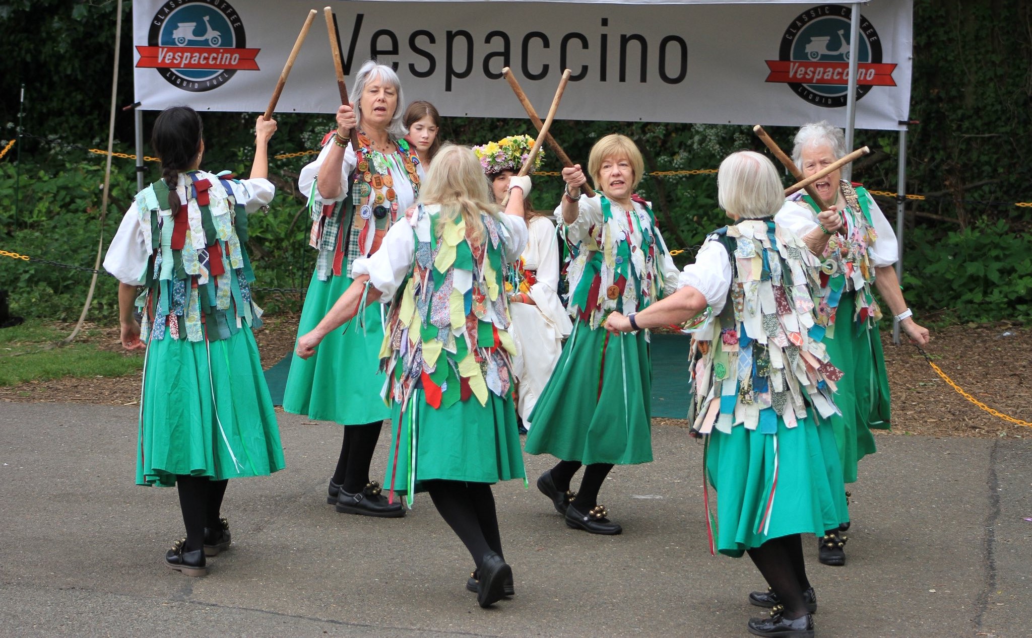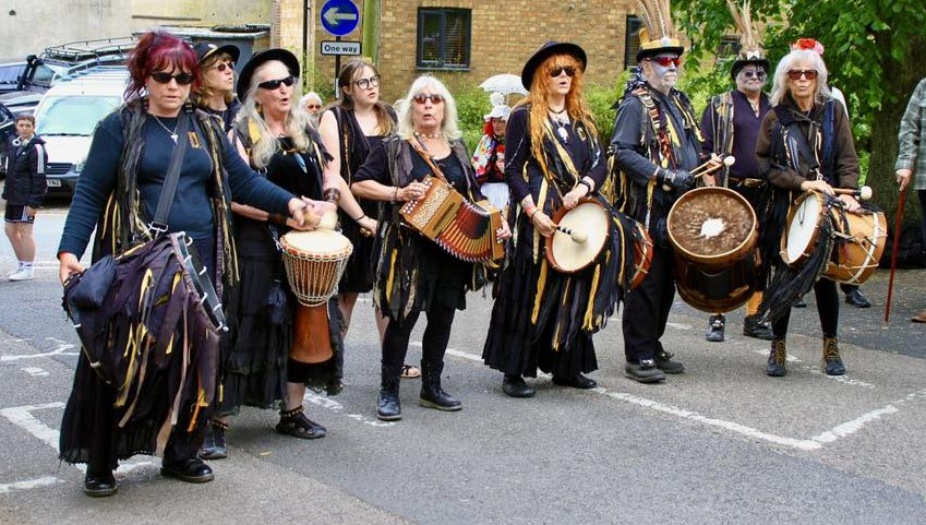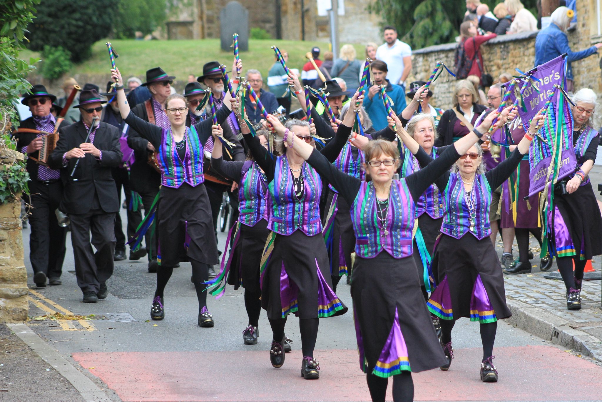 Morris sides from all over the country arrive to decorate the May Cart with flowers  and form the procession round the village up to the crowning ceremony.  In addition, there are stalls, concerts , dancing displays and other activities.  This year the visiting sides were Belle D'Vain, Berkshire Bedlams, Chelmsgord Ladies, Mortimers, Queens Oak & The Witchmen